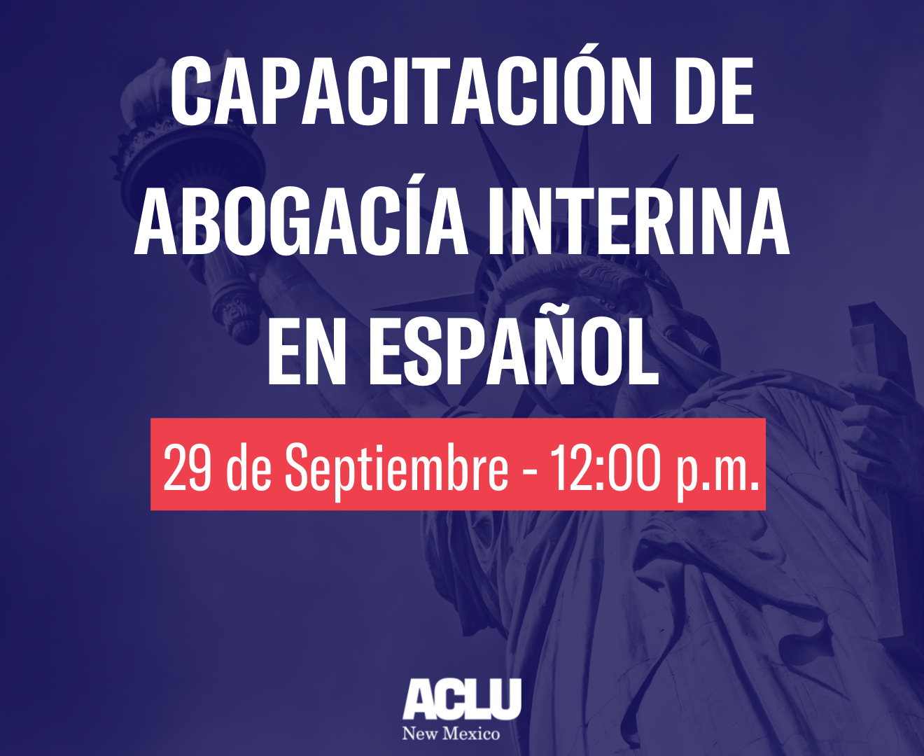 Únase a la ACLU de Nuevo México en la próxima capacitación de defensa a través de Zoom el 29 de septiembre, a las 12 p.m..